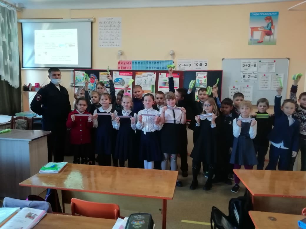 В рамках профилактических мероприятий "Внимание - дети" состоялась встреча обучающихся 2 Б класса с сотрудником Госавтоинспекции Кузнецовым А.Н. Он ознакомил школьников со статистикой ДТП с участием детей на территории города Белорецк и обозначил основные причины дорожно - транспортных происшествий. К сожалению, многие дети, являясь пешеходами, сокращают свой путь и не пользуются специальными местами для перехода проезжей части, двигаются по дороге при наличии тротуара, или переходят дорогу на запрещающий сигнал светофора.
